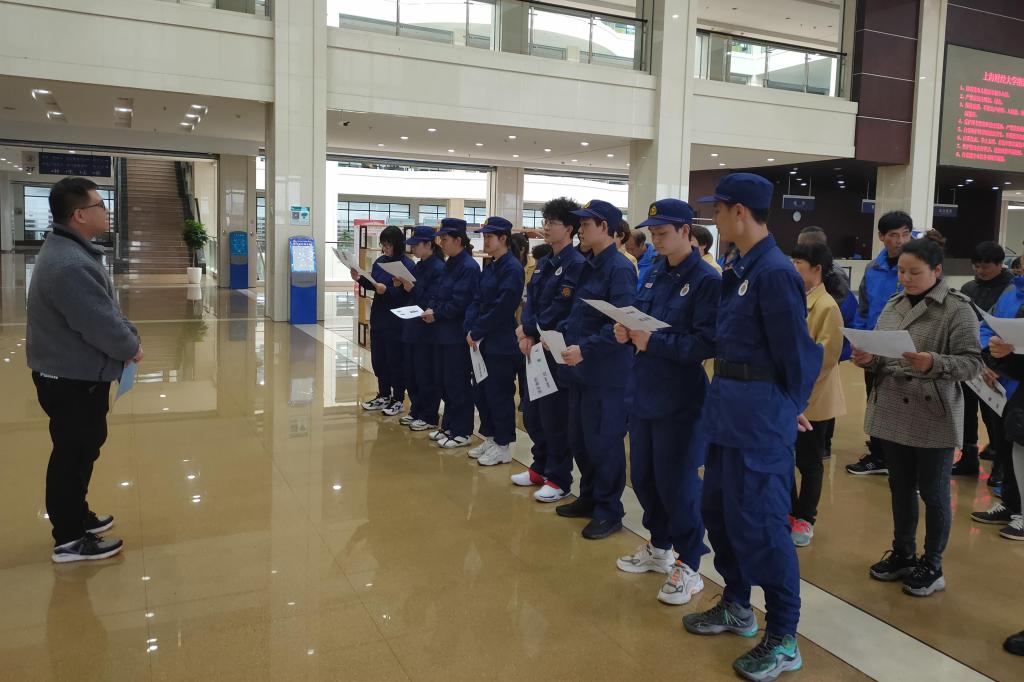 3月18日下午,为强化消防专业知识与技能,学院邀请金华市消防支队谢添教官为安保人员、新宇物业人员、学生消防队队员进行了消防知识培训活动。培训在图书馆一楼大厅开展。