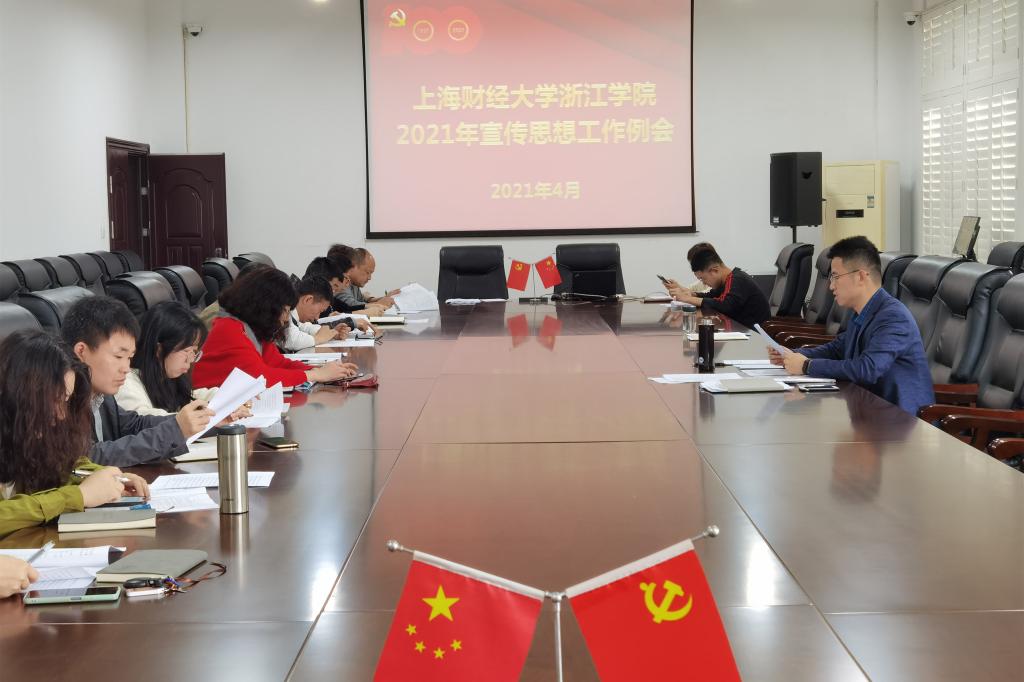 4月1日上午,学院在行政楼308会议室召开2021年度宣传思想工作例会,传达金华市2021年宣传思想工作要求,部署学院2021年宣传思想各项工作安排。各职能部门负责人、马克思主义学院负责人、党史宣传教育领导小组办公室全体成员参加会议。会议由党委委员、宣传部部长郑伟俊主持。