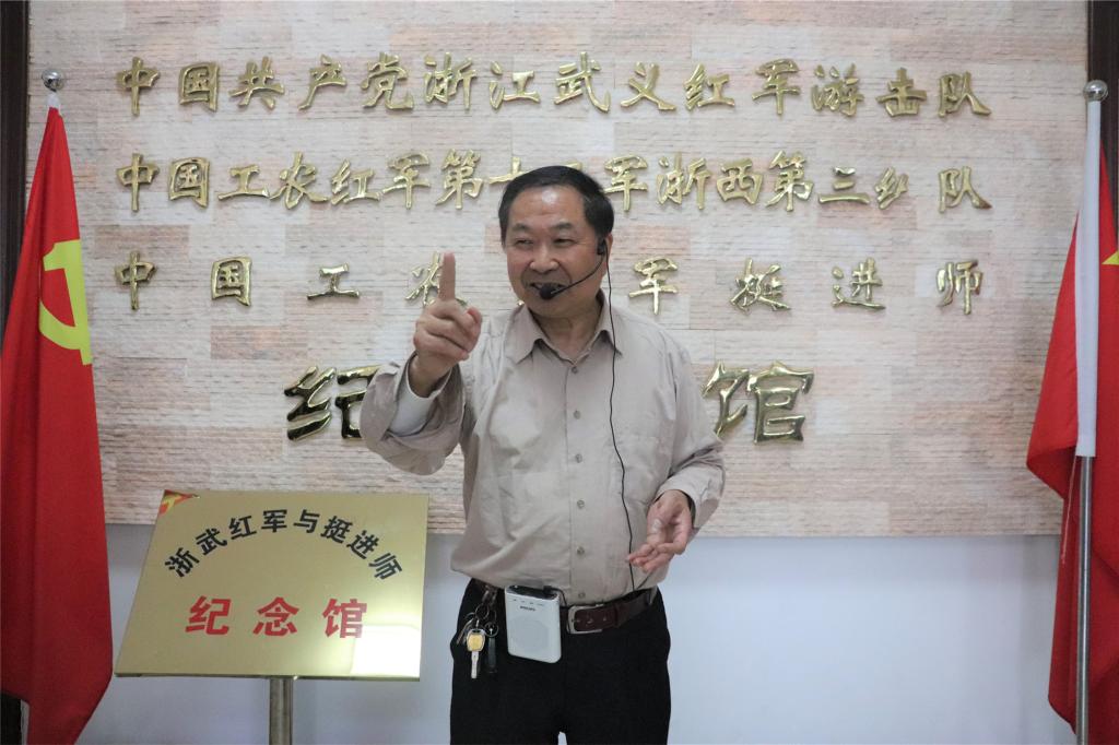 活动中,陈祖南带领师生们参观了纪念馆,结合历史实物和珍贵影像作《武义党史》精彩报告。陈祖南介绍了浙江省作为革命红船起航地在共产党成立初期做出的历史贡献,通过一张张图片讲解了在硝烟四起的战争年代,中国共产党领导的红军战士抛头颅洒热血,在武义大地上浴血奋战的英勇事迹。