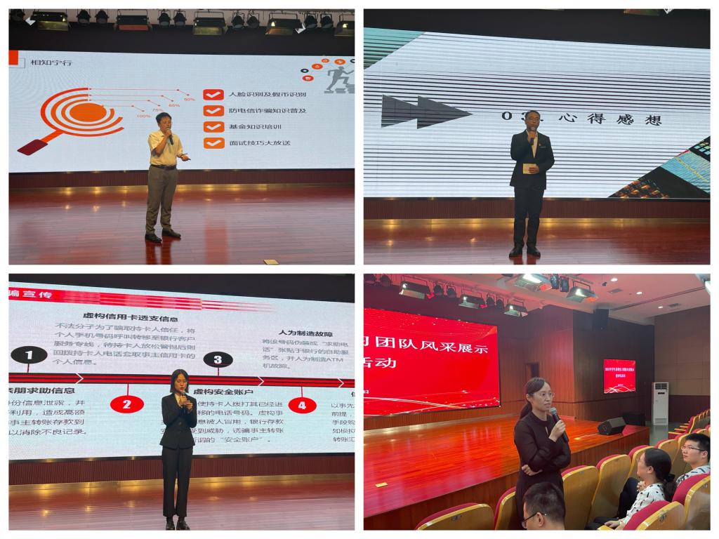 活动过程中,评委们在实习过程、实习体会等方面与各团队进行了充分交流与点评。张世兵表示就职于银行业,就要脚踏实地、务实肯干,做好基层服务型工作。陈雨朦对“宁行家”团队展示表示赞许,也向所有在场学生表示在大学期间需提前合理规划未来职业,为人生第一份工作打下坚实基础,做好一名新职场人。黄茜对“工行小分队”展示表示感谢和认可,指出在展示中细节多、亮点多,也期待未来有更多学生为银行业注入年轻力量。朱艳对校外实践教学基地的支持表示感谢,对每支团队给予了高度评价,希望所有在场学生在接下来实习中努力学习、不断突破、收获自己,在实习中学会总结创新、在创新中有所成长。