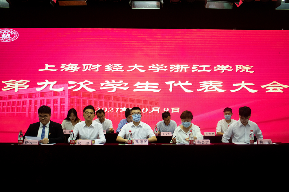 大会期间,代表们认真听取并审议通过了《上海财经大学浙江学院学生会工作报告的决议》,选举产生了上海财经大学浙江学院第九届学生委员会委员、主席团。伴着庄严的《国际歌》,我院第九次学生代表大会正式落下帷幕。