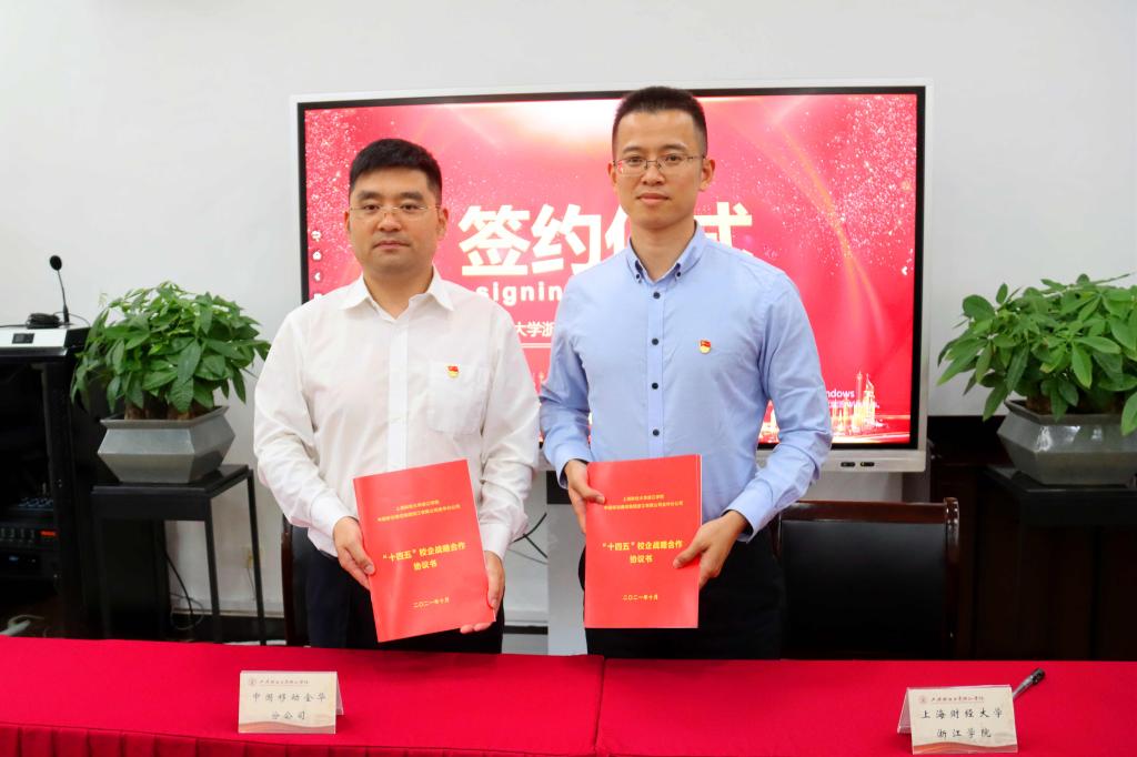 10月12日下午,学院与中国移动金华分公司举行“十四五”战略合作签约仪式。金东分公司总经理楼伟锋,副总经理李挺、程前、骆元斌;上海财经大学浙江学院党委委员、宣传部部长郑伟俊、党院办、宣传部、教育技术中心负责人和部分教师代表参加了仪式。仪式由郑伟俊主持。