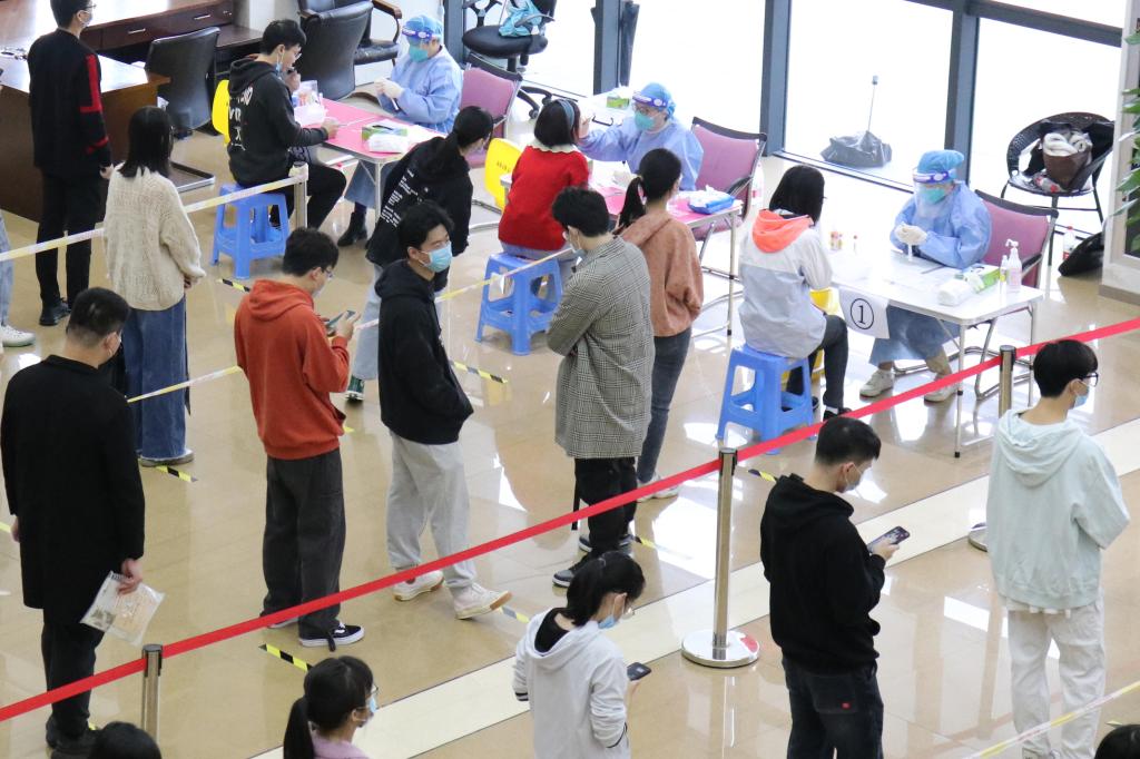 为完善校园疫情防控工作,建立快速反应机制,全面保障师生员工身体健康,根据《金华市新型冠状病毒肺炎疫情防控工作指挥部办公室关于做好近期疫情防控工作的紧急通知》精神,10月27日上午,学院开展了首次核酸抽检工作。此次抽检对象包括外省返校人员、毕业生、后勤人员,共1900余人。