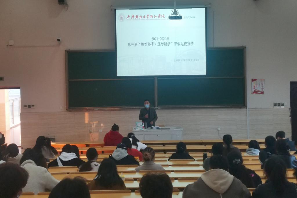 招生就业处负责人围绕寒假返校宣传的目的和意义作了动员讲话,并着重提醒同学们返校宣传活动期间做好个人疫情防护等事宜。