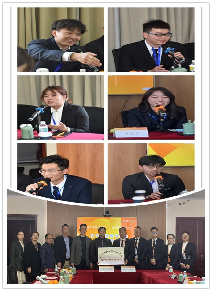 随后,校企双方就基地共建展开了交流。钱春平介绍了温州银行股份有限公司金华分行的发展历程、服务领域、人才需求以及培养机制等情况。希望深化校企合作领域,创新人才培养模式,形成合作融入、互惠共赢的良好局面。邱风介绍了学院的发展概况、专业设置、师资力量、招生就业等情况,例举了学院在应用型本科建设方面的重要举措,希望通过整合校企双方优势资源,为学生提供更多实践机会,提高学生实践能力,实现育人、用人的“一体化”,同时也希望借助实务精英进课堂、教师下企业锻炼等方式,提升教师实践教学水平。金融系徐旭水介绍了金融系基本情况,希望拓展校企合作平台,丰富双方合作内容,服务地方经济发展。郑伟俊指出通过企业文化宣传、企业导师帮带等形式,能让学生更快融入企业环境,要以实习带动就业,实现留金率提升。朱艳表示希望通过学生实习实践、开展企业开放日、教师下企业锻炼、实务精英进课堂、实践课程开发、产业学院建设等形式开展银校深度合作,提高人才培养质量,创造更大社会效益。