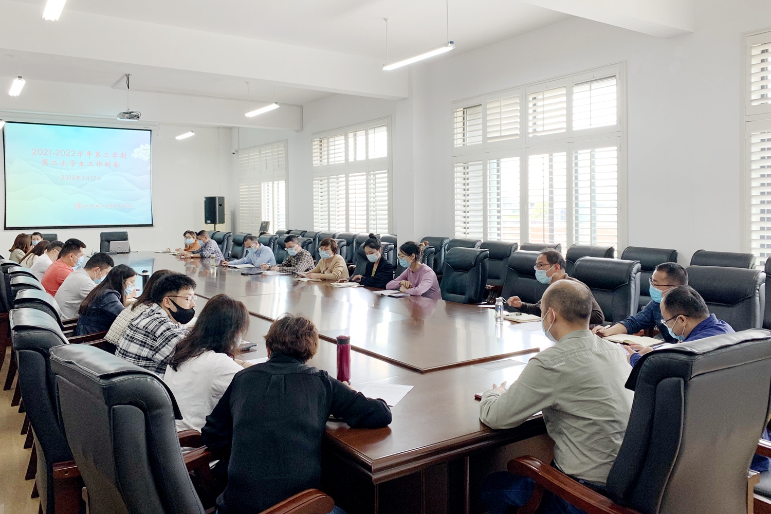 为进一步做好学生疫情防控工作研判,督促落实近期工作任务,3月17日下午,学院在行政楼308会议室召开本学期第二次学生工作例会,学院党委副书记孔德民、党委委员张正亮出席,各系党总支负责人、学工办主任、辅导员,学生处、招生就业处、团委全体人员参会。会议由学生处负责人主持。