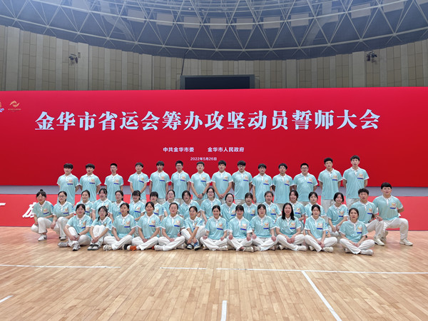 5月26日8点30分,金华市省运会筹办攻坚动员誓师大会在市体育中心举行。我院50名青年志愿者代表参加了此次活动。