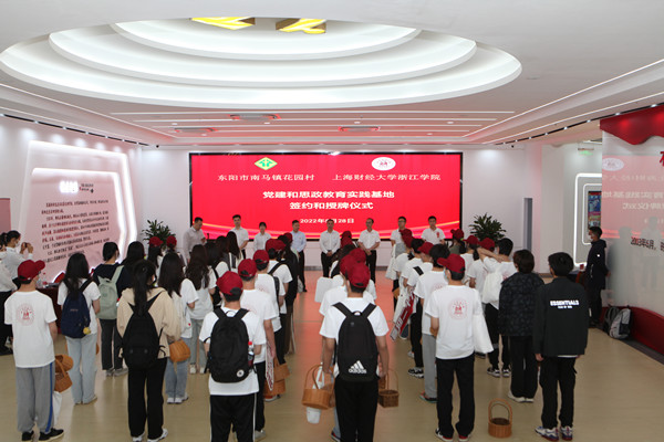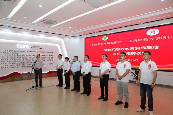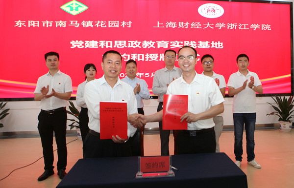 5月28日,上海财经大学浙江学院党建和思政教育实践基地签约和授牌仪式在东阳市南马镇花园党群服务中心举行。花园村党委副书记郭进武,上海财经大学浙江学院党委委员、组织部部长张正亮代表双方致辞并签约。统计系师生代表以及2022年浙中调查专家组成员等参加并共同见证。