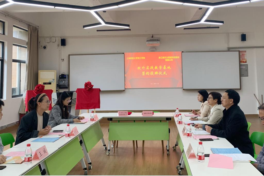 授牌仪式开始前,邱风首先对参会人员表示欢迎,介绍了学院的发展历程、发展前景、学科建设、专业配置以及人才培养机制等情况。朱艳通过介绍校企合作的模式和方法,希望深化校企合作领域,创新人才培养模式,形成合作融入、互惠共赢的良好局面。吴靖雯随后介绍了公司的发展历程和发展规划,提到学院学生的“接地气”正是本土企业发展所需要的,与上财浙院的校企合作能够更好的满足地方企业的人才需求。