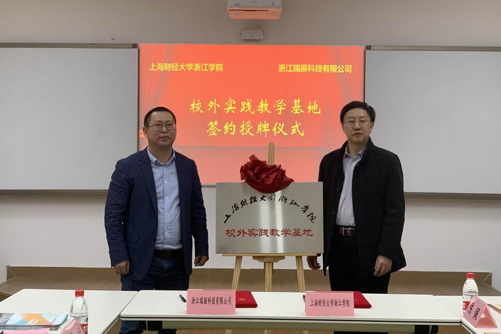 近日,我院与浙江瑞丽科技有限公司举行校外实践教学基地签约授牌仪式。浙江瑞丽科技有限公司总经理刘春荣一行,学院副院长邱风、实践教学中心主任朱艳、经济与信息管理系相关负责人和系部教师代表参加仪式。