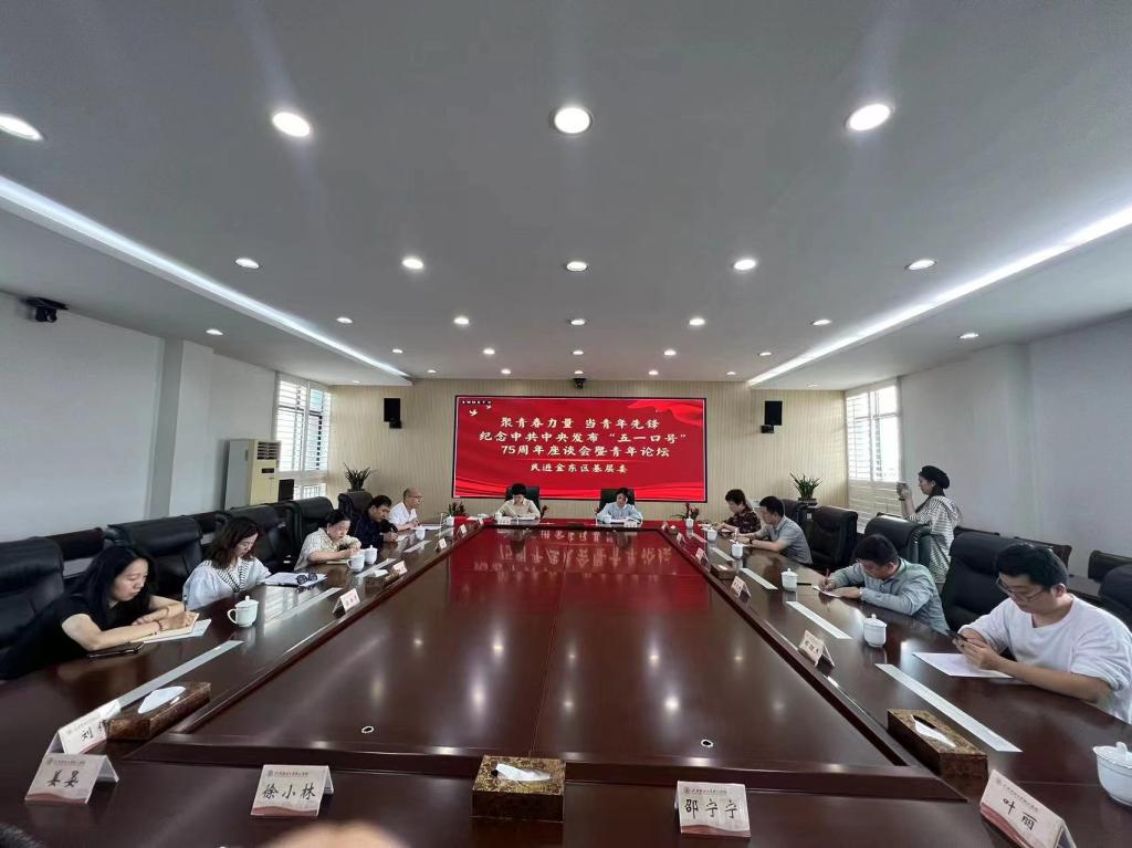 5月4日,民进金东区基层委纪念中共中央发布“五一口号”75周年座谈会暨四季读书会·青年论坛在我院举行。民进金华市委会专职副主委许英姿出席会议并讲话,学院党委委员、统战部部长徐玉芳致辞。会议由民进金东区基层委主委蒋双庆主持。