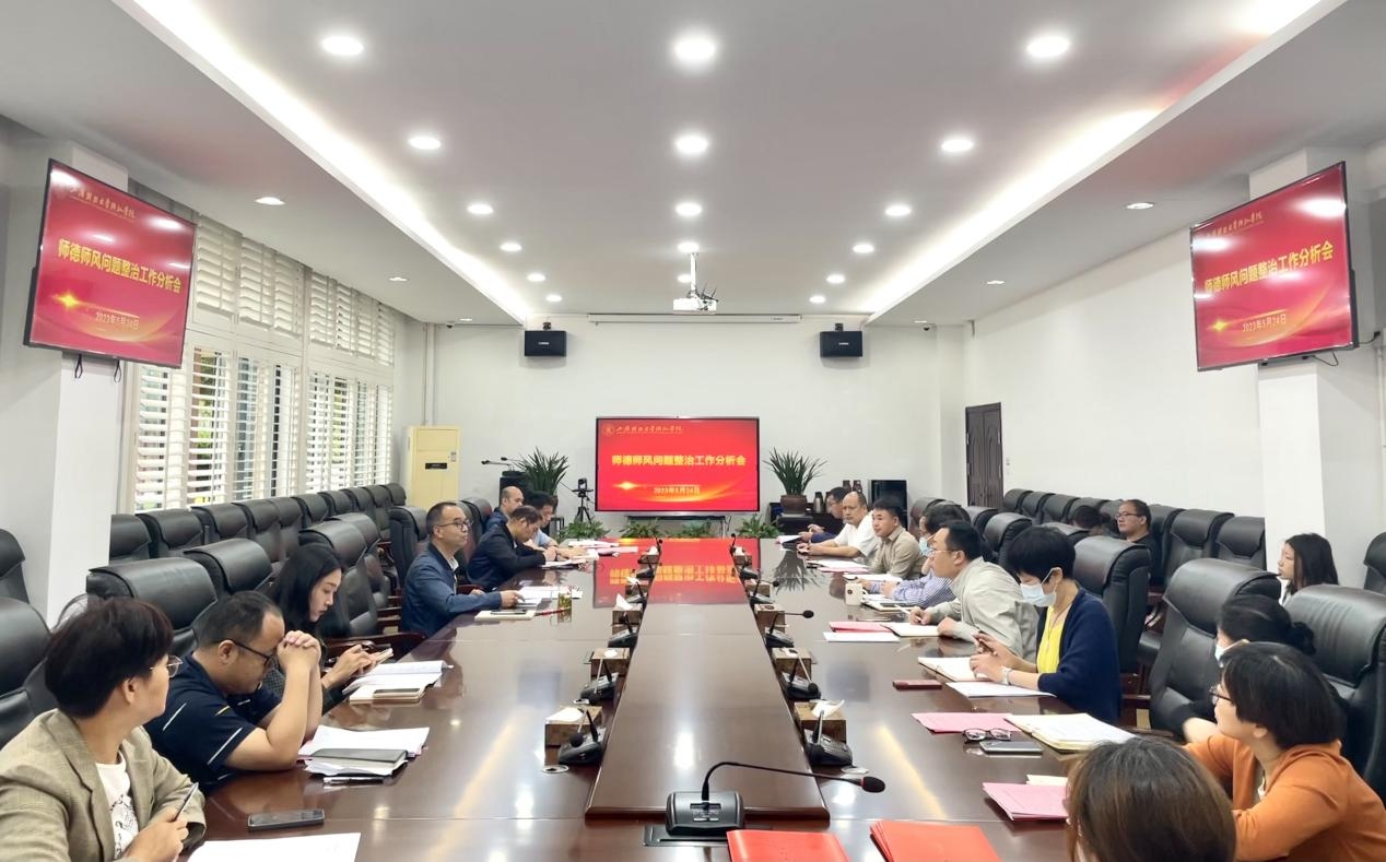 为进一步加强学院师德师风问题专项整治工作,确保整治工作取得实效。5月24日,学院在行政楼28幢108会议室召开师德师风问题整治工作推进会。各职能部门负责人,各党总支(直属党支部)负责人参加会议。会议由党委委员,组织部部长、教师工作部部长张正亮主持。