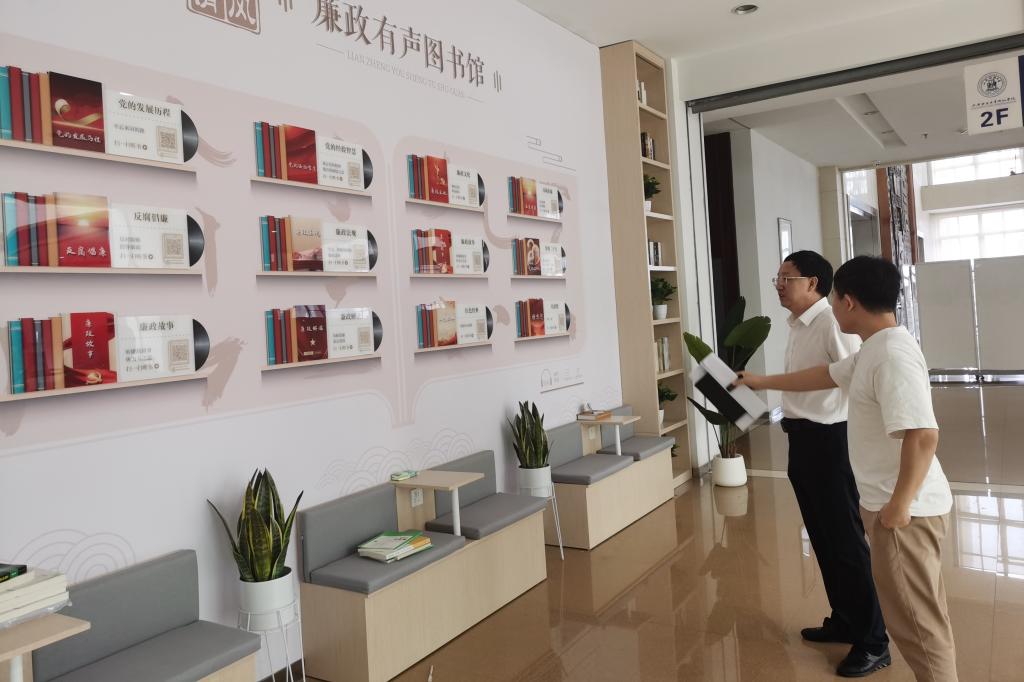 熊璞详细汇报了图书馆2023年上半年资源建设、阅读推广、读者服务、馆舍优化等工作的完成情况及新学期的工作安排,并重点介绍了“智慧图书馆”建设项目的工作进展和总体推进情况。邱风实地走访了图书馆综合服务中心、电子阅览室、特色阅读空间、主题展览空间、廉政有声图书馆等场所,每到一处,都仔细询问了解有关情况,针对馆内存在的问题和困难,要求图书馆与学院相关部门积极对接,协调推进,解决落实。