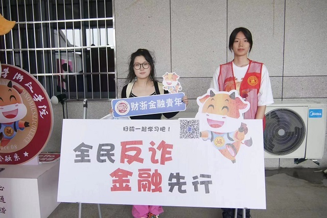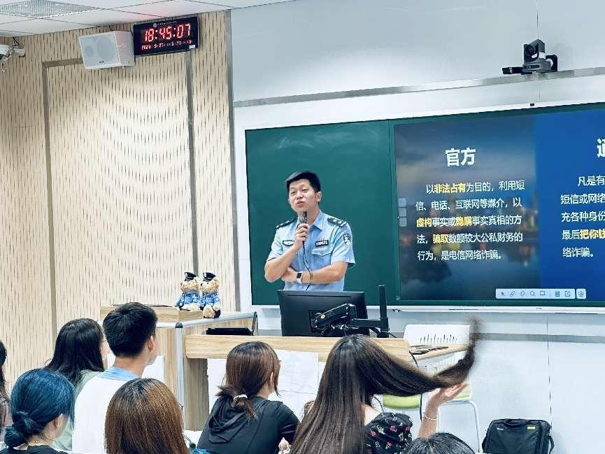 金融系则将新生反诈防骗作为新生入校的重要一课,通过报到现场向新生及其家长们讲解防诈防骗,警察、银行工作人员的专题宣讲会,校园快递站反诈骗贴纸全覆盖、“国家反诈中心”APP注册、观看官方反诈宣传片、诈骗手段情景再现小短剧、井盖绘画志愿活动之反诈篇、反诈主题街采活动、“这是诈骗!”反诈骗小视频等多种形式,提升学生防诈防骗意识和能力。