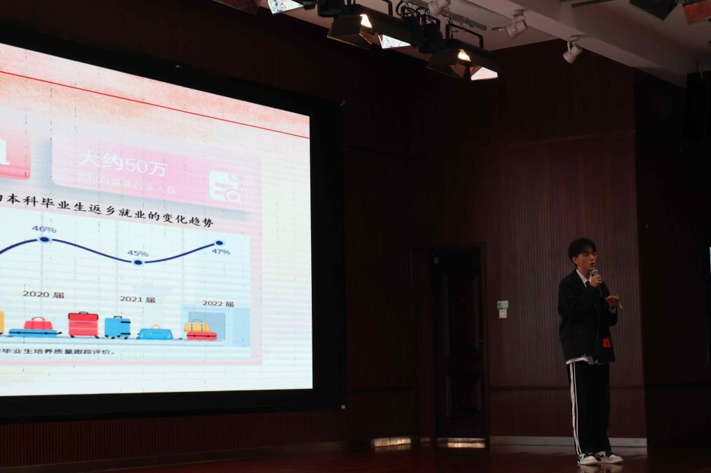大赛分为成长赛道和就业赛道,成长赛道设置主题陈述和评委提问两个环节,就业赛道设置主题陈述和综合面试两个环节。主题陈述环节,选手们结合自身兴趣和专业特点,对自我认识和外部环境进行了全面的分析,提出了自己的职业目标、发展路径和行动规划,并从可操作性和现实意义等方面进行了细致阐述。评委提问和综合面试环节,选手们沉着冷静,反应迅速,思路清晰。