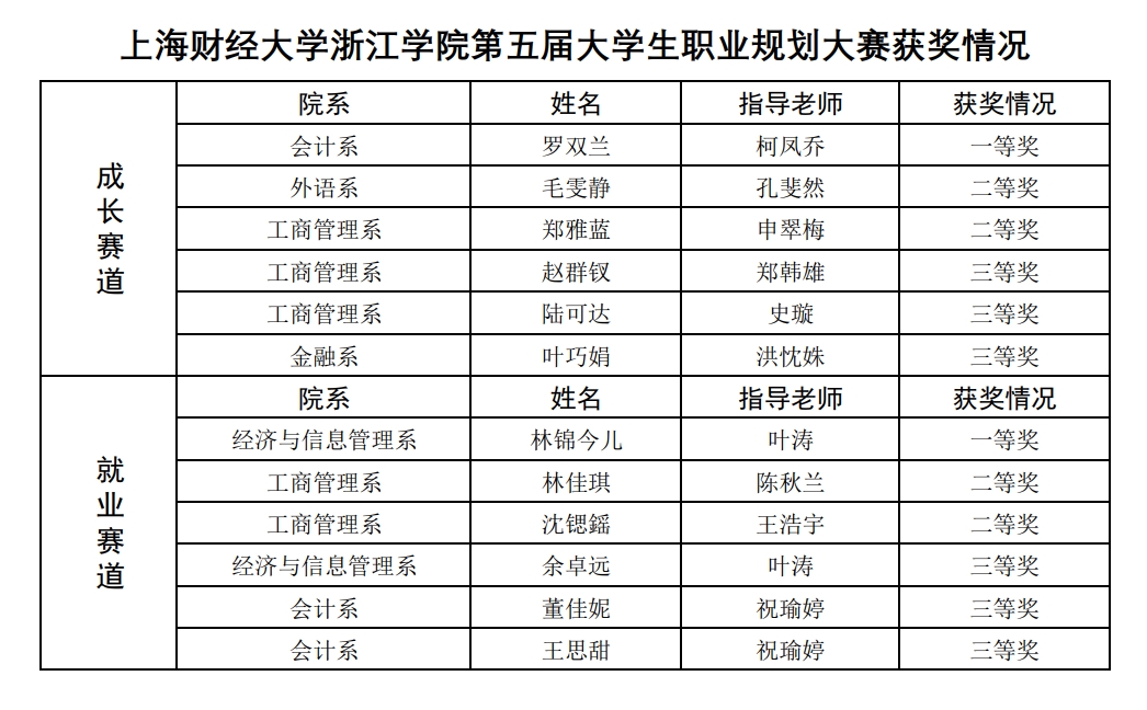 经过三个多小时的激烈角逐,大赛评选出成长赛道一等奖1名,二等奖2名,三等奖3名,就业赛道一等奖1名,二等奖2名,三等奖3名。