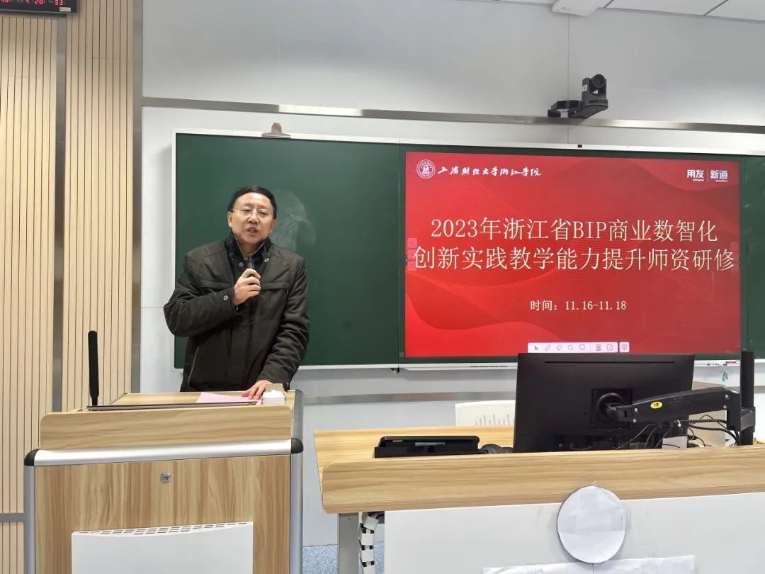 11月16日-18日,由新道科技股份有限公司主办、上海财经大学浙江学院承办的BIP商业数智化创新实践教学能力提升师资研修班在我院成功举办。副院长邱风出席开班仪式并讲话。
