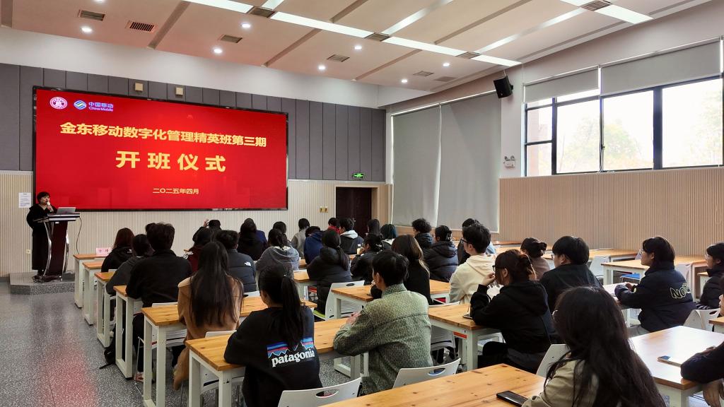 为深化产教融合,培养高素质应用型人才,4月1日,中国移动通信集团浙江有限公司金东分公司与学院在教学楼8幢举行了金东移动数字化管理精英班第三期开班仪式。中国移动通信集团浙江有限公司金东分公司总经理林金华和副院长邱风出席了开班仪式,中国移动通信集团浙江有限公司金东分公司副总经理张皖莹、市场部经理于淑平和校园经理方倩,实践教学中心主任朱艳和金东移动第三期数字化管理精英班全体学员参加。