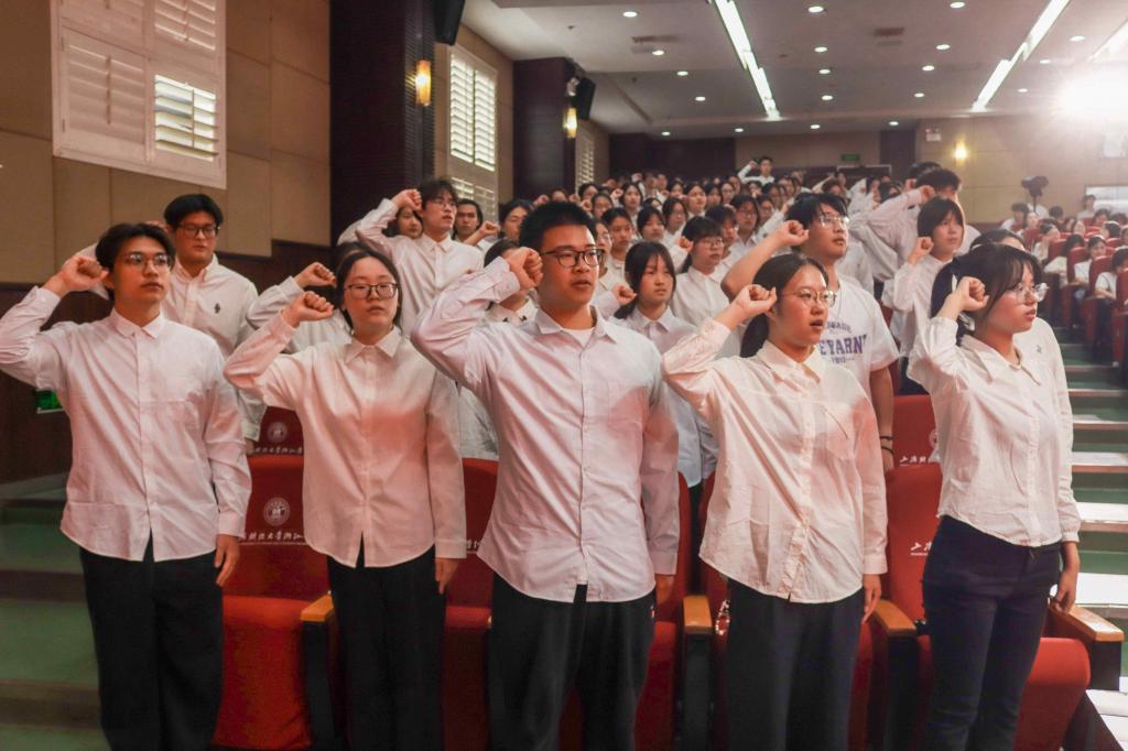 2025年上半年新发展团员进行入团宣誓。