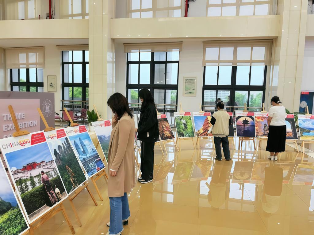 活动期间,图书馆二楼大厅同步展出王剑波拍摄的“中国世界遗产”和“环游世界”主题摄影作品,作为人民日报《环球人物》杂志社“中国范”(CHINA FUN)国际传播平台全球巡回系列的一部分,这50余幅作品从杭州西湖的潋滟波光到布达拉宫的庄严剪影,用光影语言呈现不同地方文明的独特魅力。