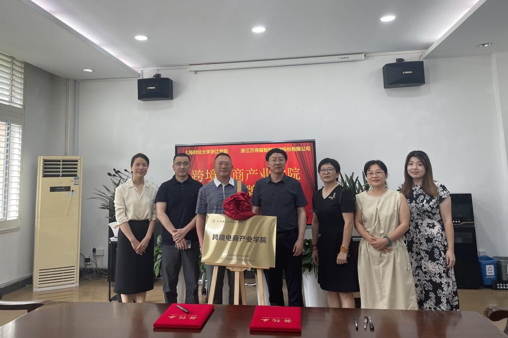 签约仪式上,张一为和邱风代表合作双方共同签订了《上海财经大学浙江学院跨境电商产业学院合作协议书》,并为跨境电商产业学院揭牌。随后参会人员一同参观学院实践教学中心、跨境直播中心、数字经济工作室,对学校的科研创新力量,和电商产业发展进行展示与交流。